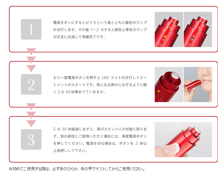 同じ部位へのトリートメントは4時間以上間をあけ1日3回までにしてください。