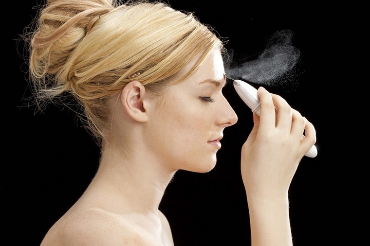 ・顔に水を付けて本体のスイッチを入れたら、スパチュラを顔に這わせるだけ。