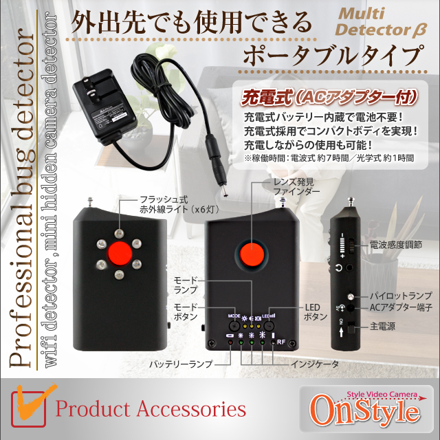 【小型カメラ検知】【盗聴器カメラ発見器】盗聴器・盗撮器・光学式有線カメラ発見器 マルチディテクターβベータ(オンスタイル/R-211)